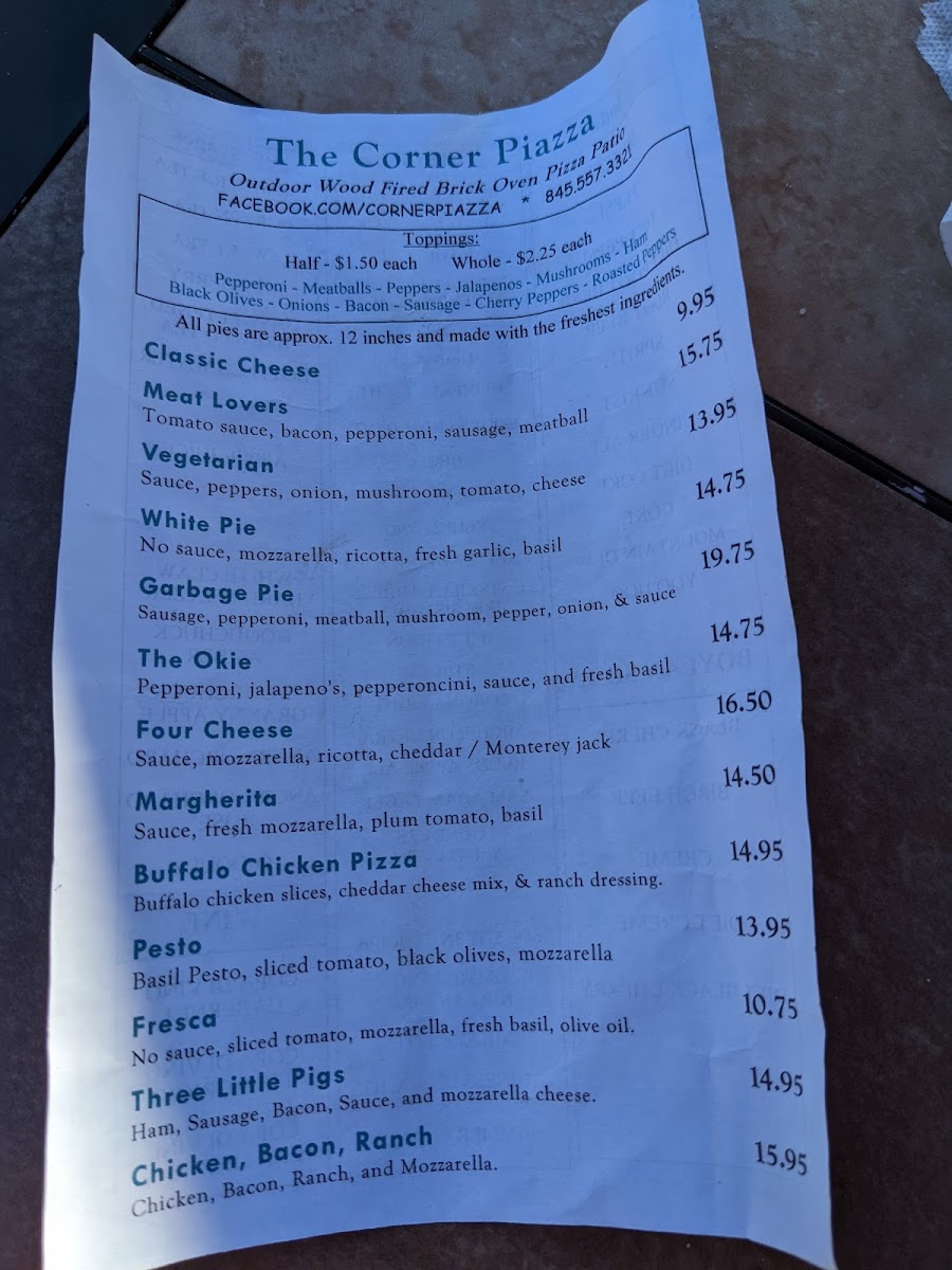 Welcome to Corner Piazza, a hidden gem nestled in Eldred, NY, where traditional Italian cuisine meets a warm, welcoming atmosphere. Specializing in wood-fired pizza, this rustic eatery is loved by locals and travelers alike. Customers rave about the authentic flavors, with standout options like the plain and margherita pizzas, both praised for their delectable taste and perfect crust.